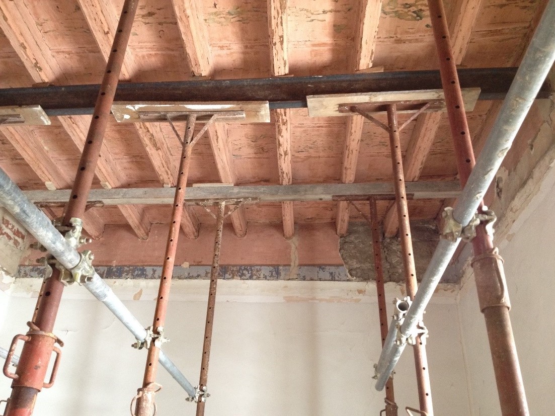 Dal punto di vista strutturale sono stati sostituiti i solai ammalorati, ormai non più idonei a garantire le necessarie condizioni di sicurezza e portanza. Le nuove orditure sono state inserite mantenendo le geometrie e le quote preesistenti, impiegando tecniche compatibili con il contesto storico, con recupero delle parti originarie ancora in buono stato. Contestualmente sono state consolidate le murature tramite iniezioni di malte a base di calce, ristilatura dei giunti e interventi di cucitura strutturale nei punti più critici, integrando tiranti e barre in acciaio inox opportunamente mimetizzati per assicurare il miglioramento del comportamento statico senza alterare l’aspetto dell’edificio.